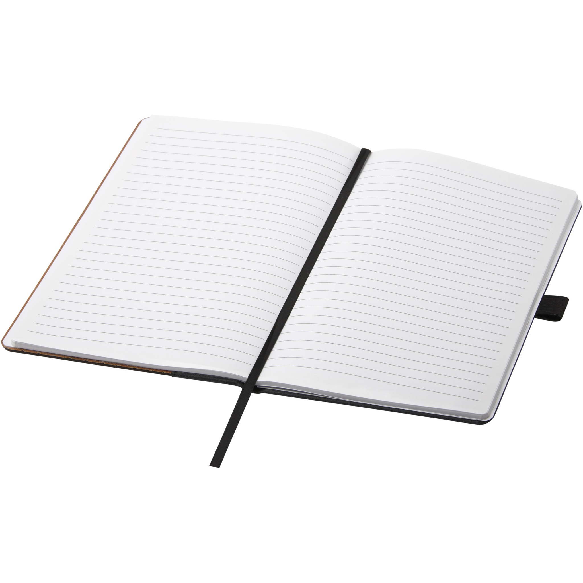 A5-anteckningsbok med bambuöverdrag och en rygg gjord av bundet läder. Har 80 ark på 80 g/m2 med linjerat återvunnet papper och en svart slinga för pennor, elastiskt band och band som markör.