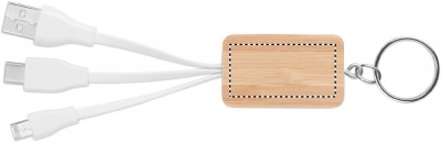 Nyckelring i bambu - med laddkablar. USB-A och typ C och Micro-B