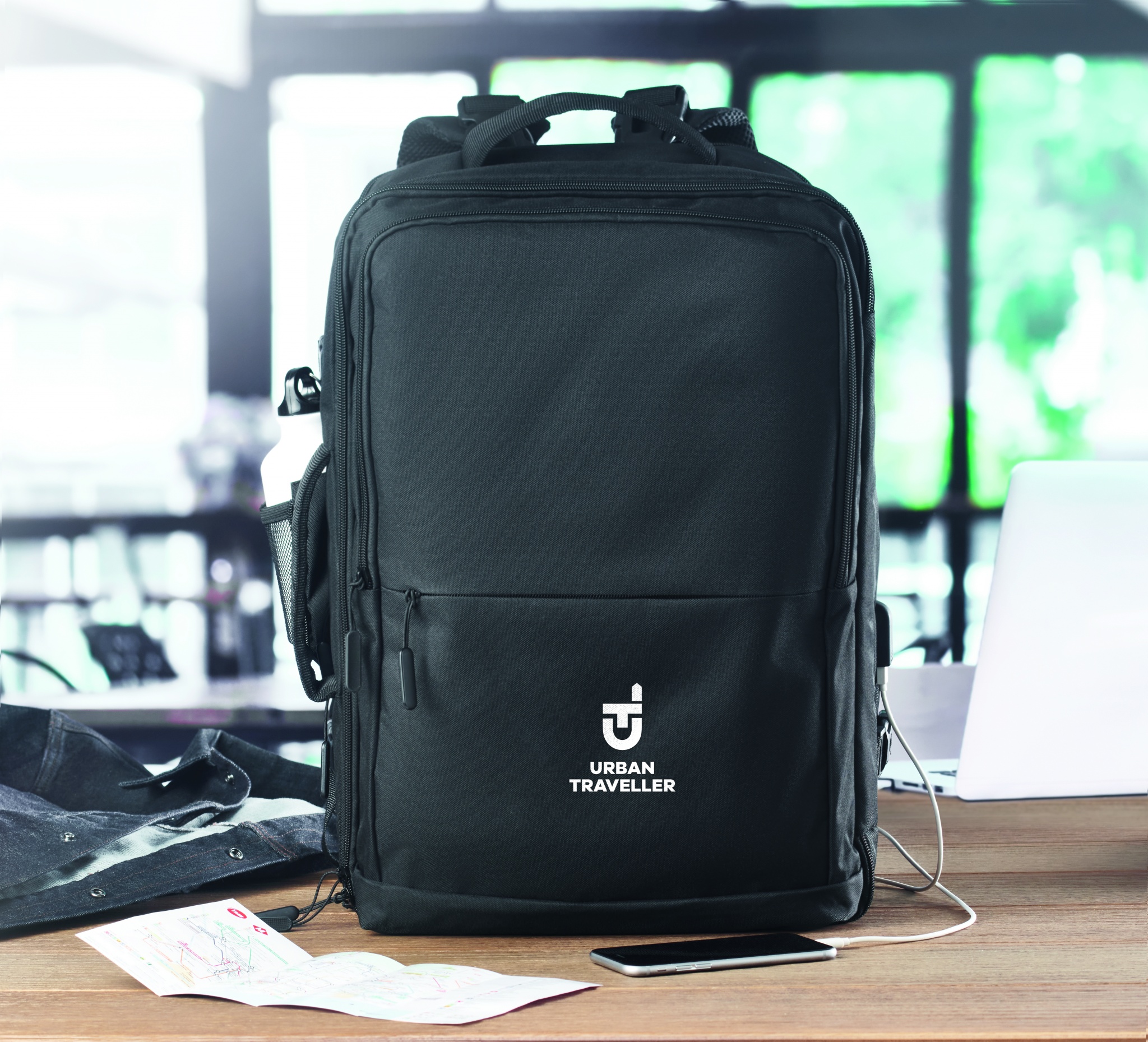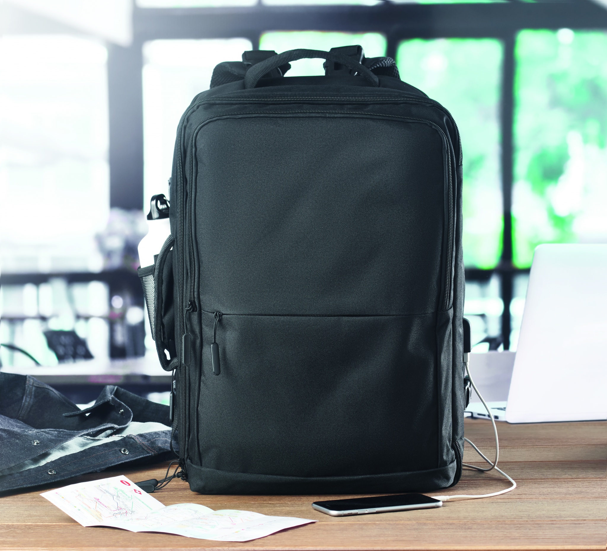 Travel Tech ryggsäck i 600D RPET polyester. Modulär / inklusive flera fack.