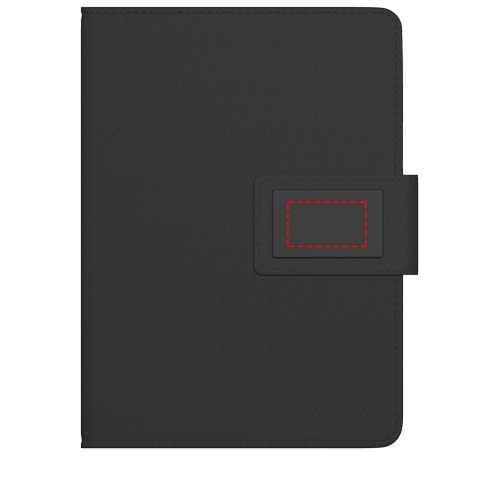 Anteckningsbok med belyst logotyp, en 4 000 mAh powerbank och en 3-i-1 integrerad kabel (typ C, Android, iPhone). Ingång: 5 V/1 A. Utgång 5 V/2A. Magnetremmen tänds när den öppnas. Fungerar i upp till 25 dagar utan att ladda om enheten! Anteckningsboken innehåller 30 sidor. Levereras i en presentask av återvunnet papper med magnetstängning.
