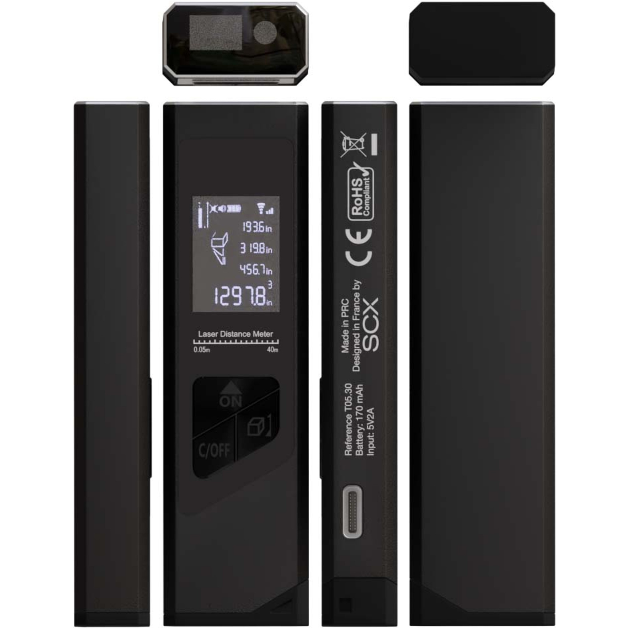 Med minilaseravståndsmätaren kan du på ett enklare, snabbare och mer exakt sätt att mäta yta, volym och den har dessutom en Pythagoras-funktion. Med sin laserprecisionsteknik och mätningsläge i realtid ger den tillförlitliga mätningar på upp till 40 meter. Avståndsmätaren använder ett energibesparande 200 mAh litiumjonbatteri som strömförsörjning och kan mäta avstånd 2 000 gånger efter fulladdning. Den har en bakgrundsbelyst skärm för enkel visning även på mörka platser. Storlek: 9 x 2,4 x 1,1 cm. Förpackad i en presentförpackning av återvunnet papper (10,2 x 4,2 x 3 cm) med magnetstängning. Inkluderar 3 års garanti.
