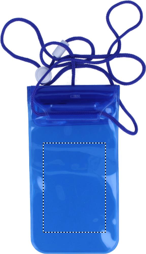 Vattentät smartphone påse i PVC med polyestersnöre. Säkerhets spänne och stopp. Påsen har en tunnare yta som tillåter användning av pekskärmen från utsidan. Mobilfodralet passar de flesta modellerna på marknaden. Ett måste på stranden!