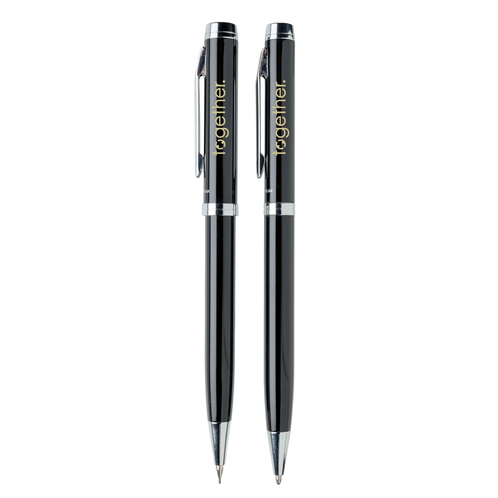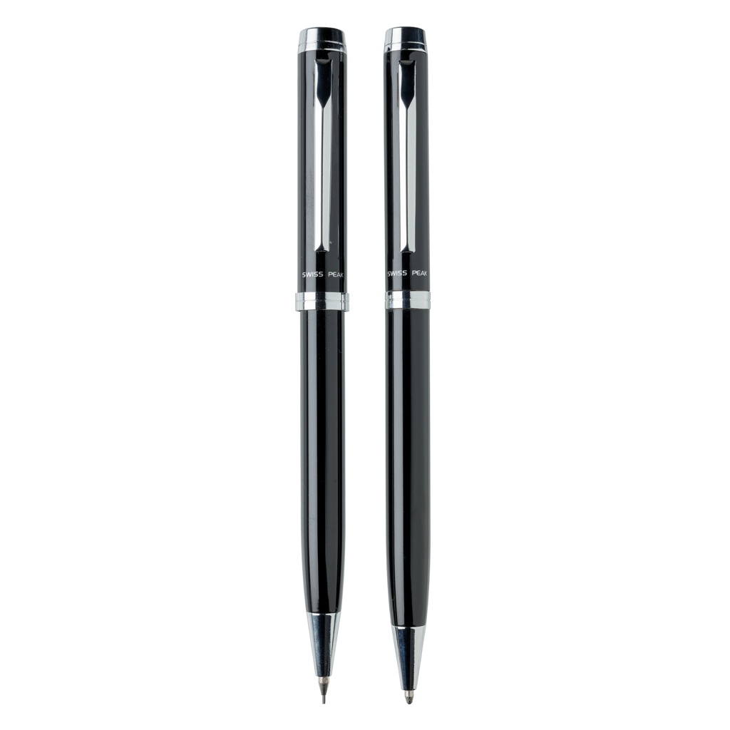 Set bestående av en kulspetspenna och en stiftpenna som båda kännetecknas av kvalitet och elegans. 1200 m skrift, tyskt bläck. 3 st 0,7 mm stift medföljer. Levereras i Swiss Peak presentförpackning.