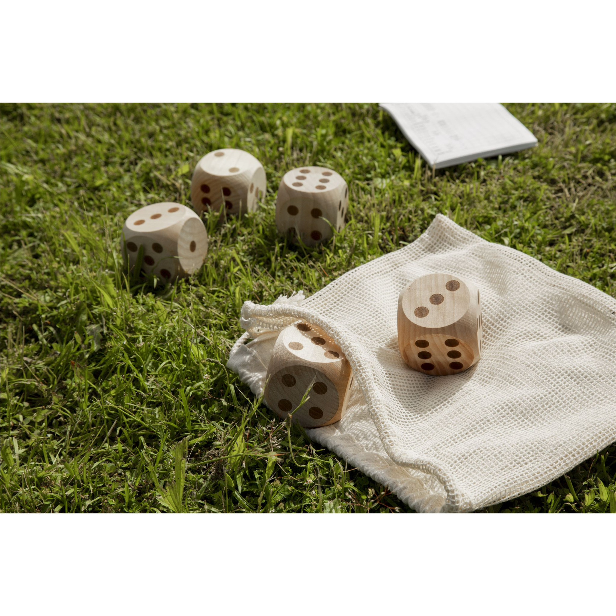 WoW! Gör rätt kombinationer med dessa fem tärningar i en extra stor storlek (5,5 x 5,5 cm). Detta spel uppmuntrar till att leka utomhus tillsammans. Tärningarna är gjorda av FSC MIX-certifierat furu. Inkluderar poängblock, regler och förvaringsväska i bomull. Underhållning för unga och gamla. Artiklar levereras som ett set i en brun kartong.