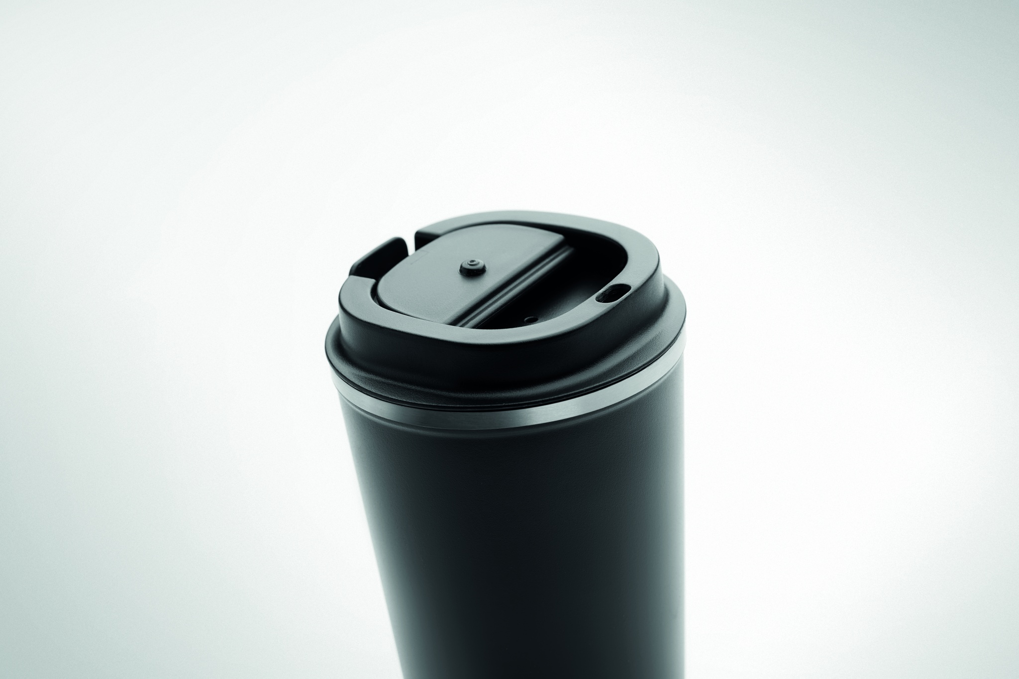 Take away mugg med dbbel vägg i rostfritt stål och PP lock. Ta med dig ditt kaffe, te eller annan varm dryck med denna snygga mugg. Håller din dryck varm eller kall så att du kan njuta av den. Kapacitet: 350 ml. Läckagefri.